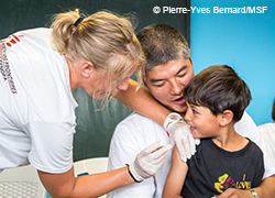 「病原体」と呼ばれる細菌やウイルスなどが、空気、飛沫、水などの生活環境を通したり、動物や人と接触することで、体内に入って増殖することを「感染」と呼びます。このような病原体に感染して発症する病気のことを「感染症」と言います。 例えば、蚊を媒介して広がるマラリア、日本でも過去に流行していた結核、エイズ(後天性免疫不全症候群)や、致死率が最高で90%程度に達することもあるエボラウイルス病(エボラ出血熱)、世界各地で流行した新型コロナウイルス感染症(COVID-19)などが存在します。 国境なき医師団は、医療機関における感染予防・制御に関する取り組みをはじめ、治療センターの設置、感染者の治療、感染予防のための予防接種や健康教育などを実施しております。特に、医療や衛生面で脆弱な環境に暮らす難民・避難民など、弱い立場に置かれた人びとへの支援に力を入れています。 例えば、3000円の寄付で、子どもたちをはしかから守るための、66回分のはしかワクチンを用意できます。