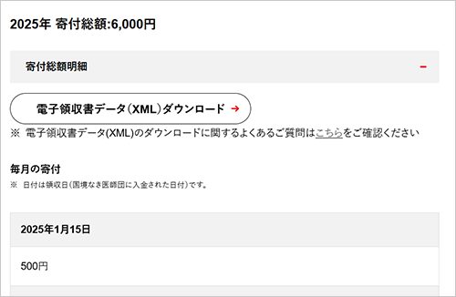 - ※電子領収書データ(XML)は2025年以降のご寄付からダウンロード可能です