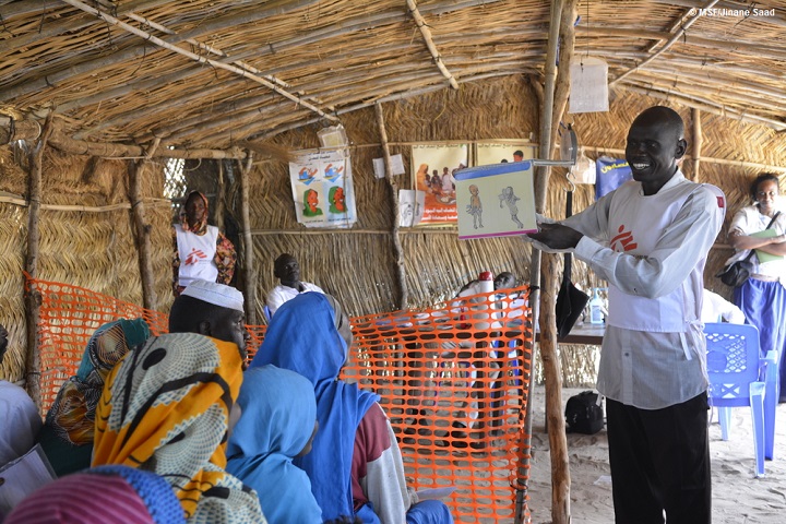 MSFの医療援助は、難民だけでなくカリオの地域住民も対象となる。地域の代表者イブラヒム・コリナさんは「地元の住民にとって、病気の予防や治療にMSFは欠かせない存在となっています」と話す。