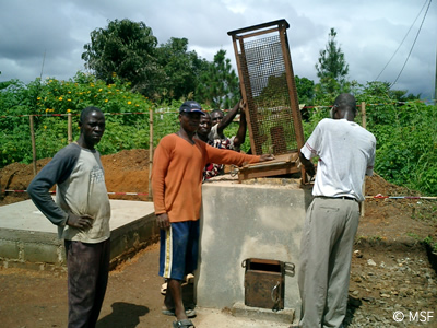 病院の焼却炉を作る現地スタッフ