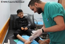 手足を銃撃され、骨や腱、神経まで損傷してしまった人。銃弾で拳ほどの大きな傷を負った人。パレスチナのガザ地区で、国境なき医師団(MSF)は2018年4月…