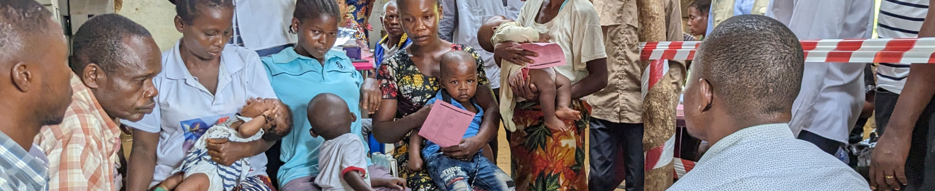写真上:国境なき医師団が実施するはしかの集団予防接種に集まるコンゴ民主共和国の親子 © MSF
