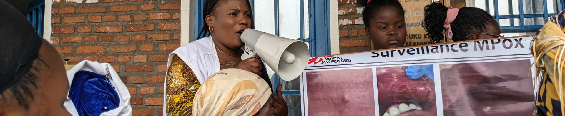 写真上:コンゴで住民に向けてエムポックスの啓発活動に取り組むMSFスタッフ © MSF